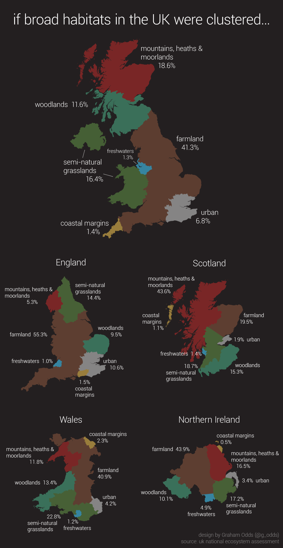 The obvious answer is that 6.8% of the UK is just short of 2 million football pitches. Unfortunately, this is still not actually something I can remotely picture (much like genuinely imagining more than 10 otters is a tall order). The best solution I could come up with was to put the information in the context of actual geography:
