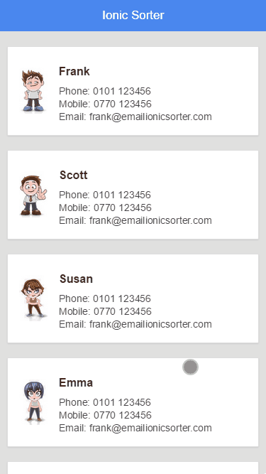 For the purpose of this blog article, I’ve built a simple Ionic application with a sortable list. The full project is available on GitHub. Note that this project also uses jQuery to make a few things a bit easier, but it should be possible to eliminate jQuery if required.