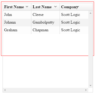 After replacing ng-style with sl-ng-style-prelink in our view, the grid now renders correctly within the container: