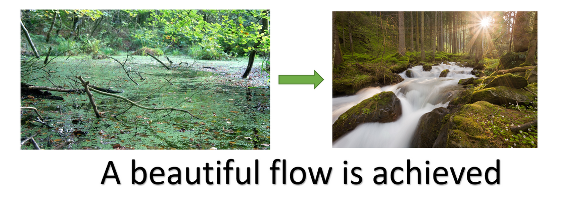 - Flow: This is the flow of work through our value stream. In the development we can think of it as features that come to the team in the form of requirements/wants and end up being handed over to the next team in the stream (test/qa/operations). We want to maximise the completion rate and minimize the number of bugs.