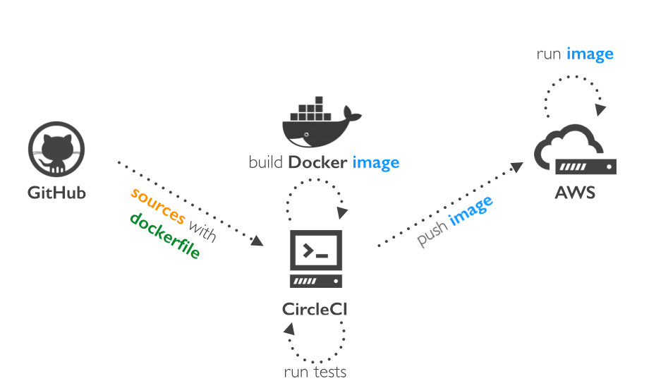 One of the first things we set up was the deployment process for the project. We used Docker to add a layer of abstraction between the application and the operating system. As Docker packages the application and its dependencies into an image, the Docker container can be run on most Linux machines. This made our deployment much simpler than it otherwise would have been as we had CircleCI run our Dockerfile, which built the Docker image. CircleCI then ran a script to deploy the image to Amazon EC2 Container Registry (ECR). AWS ECR has a service running which picked up this incoming image, and (depending on which Git branch the image came from) deployed it to its relevant server - production, develop, or feature.