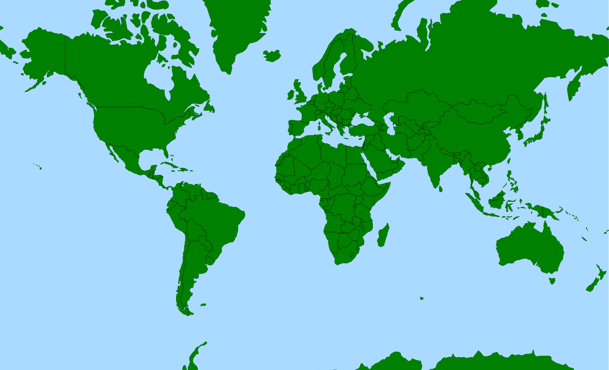 .center([0, 10]);I’m going to stick mostly with Mercator’s original configuration by using an aspect ratio of 1.65, and truncating the map at 80° North and 66° South. This gives us a rectangular map (the projection projects to a square) focused on our area of interest by truncating some of the Arctic and much of the Antarctic. To do this, I’ll set the aspect ratio (elsewhere using CSS), provide a scaling function to fit the current width, clip to the size of the element, translate the projection center to be in the centre of the element, and shift down the projection center by 10° (to compensate for the truncation at North).