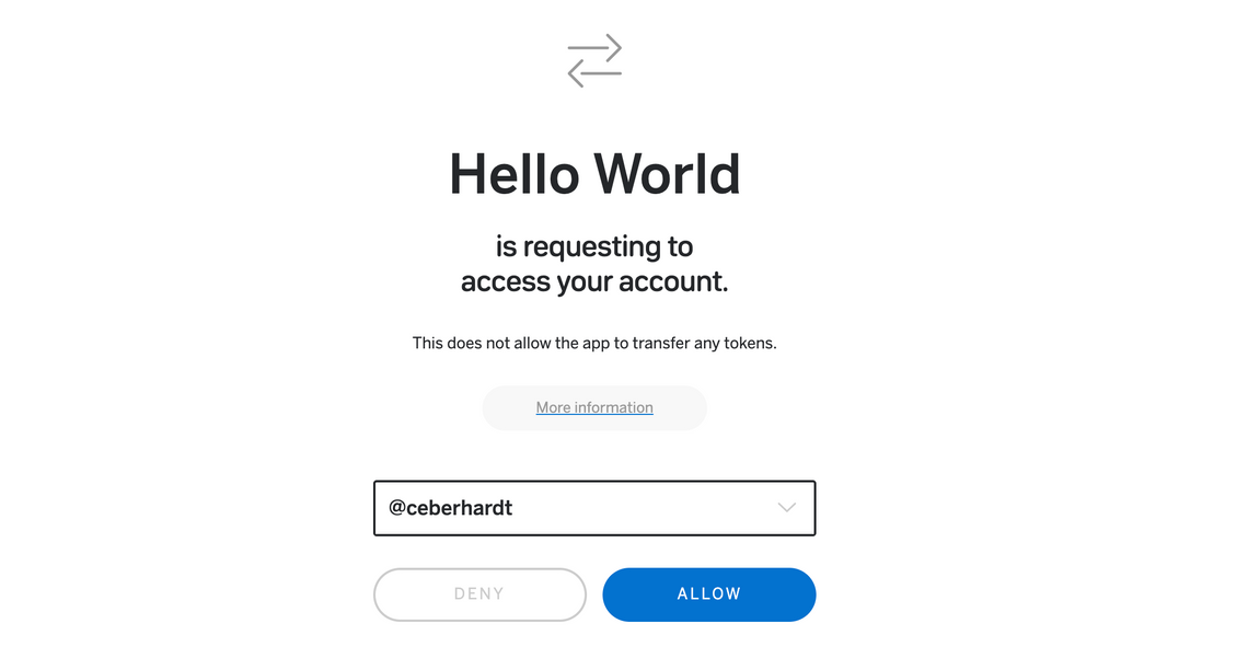 Once access is granted, you are redirected back to the hello world app, where the contract is invoked, returning the greeting with the accompanying invocation count, i.e. hello world 0, hello world 1, …