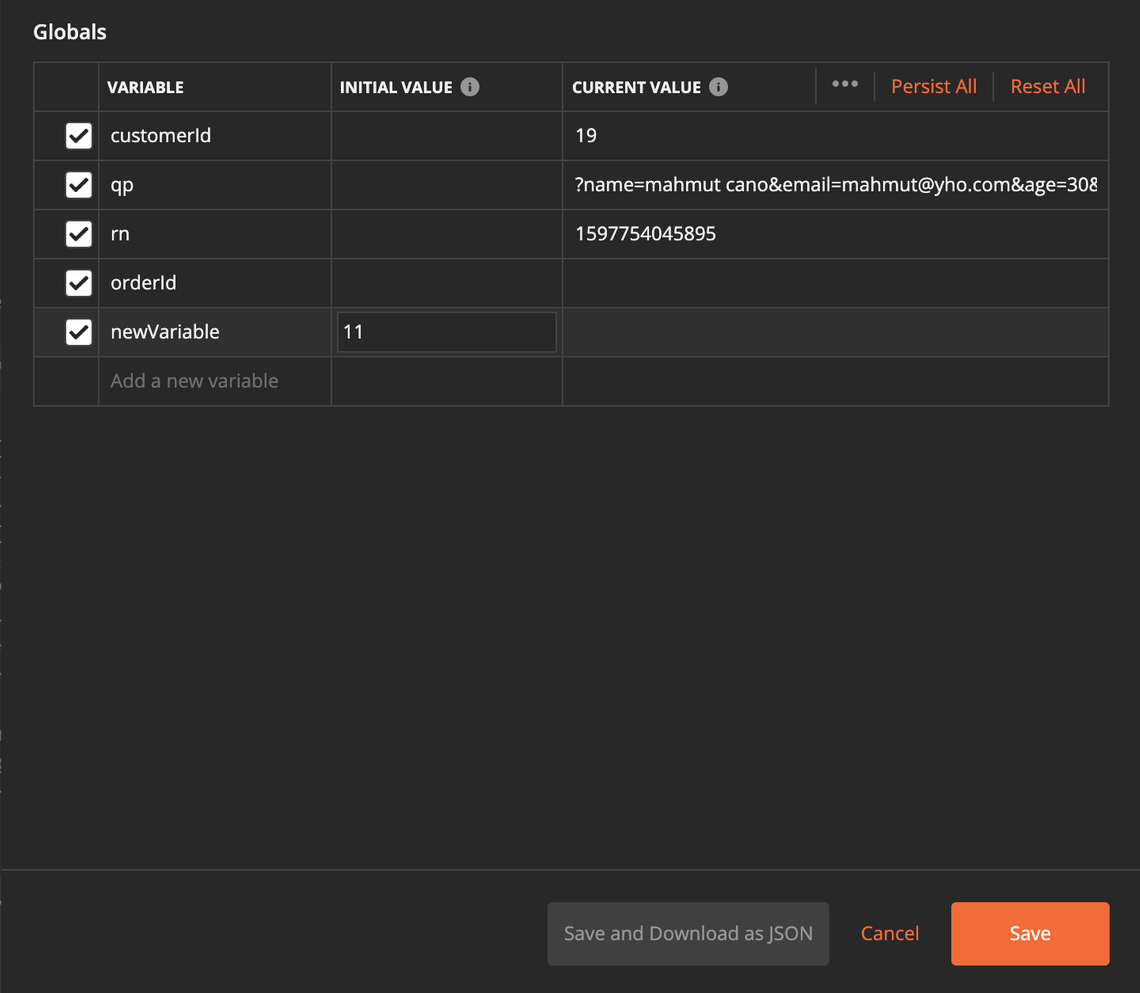 If you want to get something running and don’t want to worry about which variable you should use at the moment, if you are exploring an API for example, you can go for global variables initially. Once you understand how your API is supposed to work, remove any variables as soon as you don’t need them : pm.globals.unset(‘myVariable’);