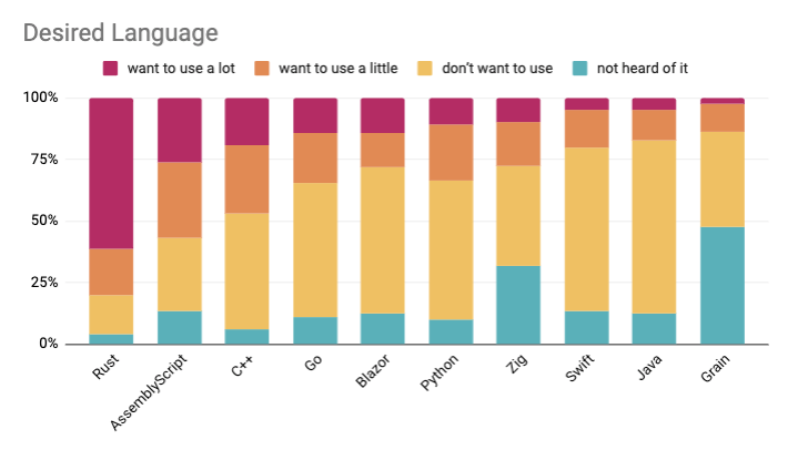 The next question asked which languages do you most want to use in the future for WebAssembly development?