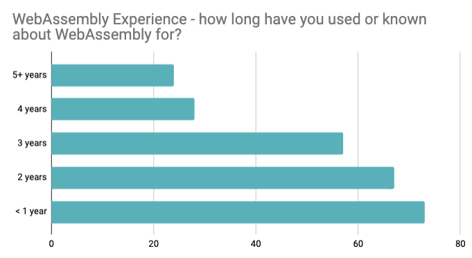 They were also asked about how long they had been using, or had known about, WebAssembly for. Most were quite new to this technology: