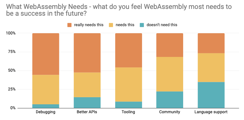 The next question asked what do you feel WebAssembly most needs to be a success in the future?