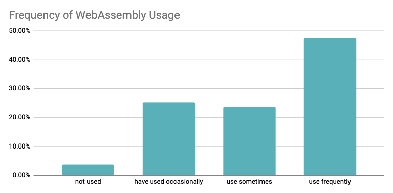 Looking at results across all the languages, we can see how frequently respondents are using WebAssembly:
